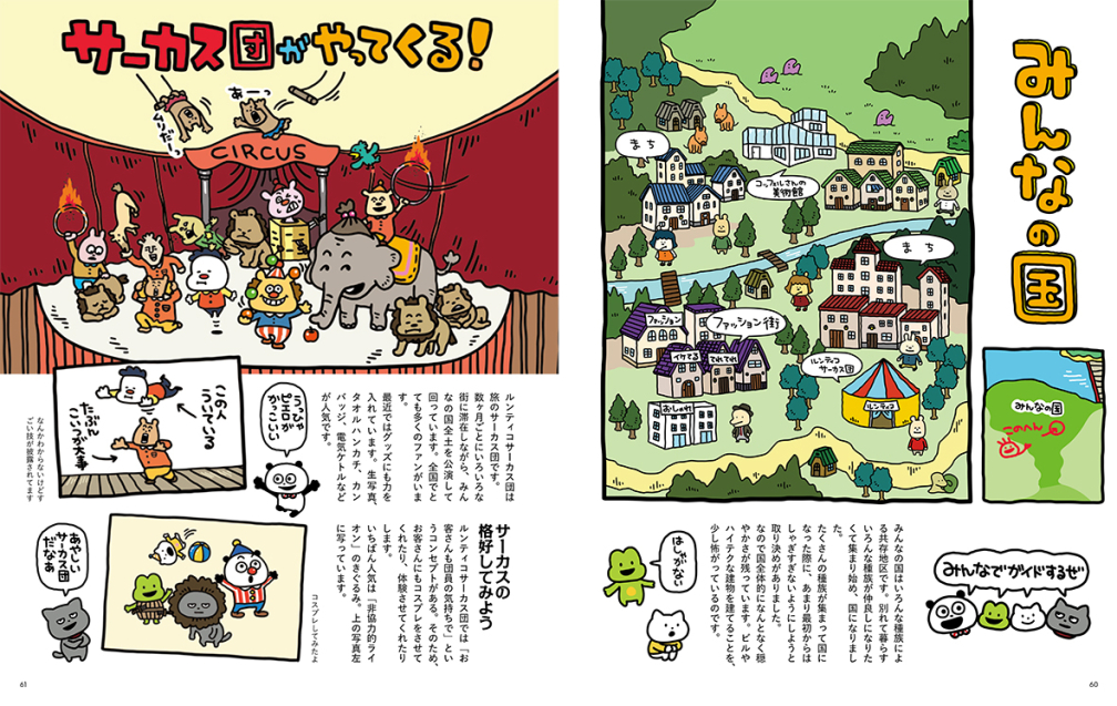 본서는 어떤 나라도 인간계도 통째로 즐겁게 하는 작전의 하나로서 스튜디오 UG의 동료가 「동물 나라」를 총력 취재한 최초의 가이드북입니다.「도부츠 나라」에는 현재 알고 있는 범위에서 13개의 구역이 있으며, 각각 정취 깊은 문화를 가지고 다양한 거주자들이 살고 있습니다.동료들의 취재 비화 「우라화」를 만화에 게재하는 것 외에 「니시무라 모험의 수기」나 「나조의 야생동물 도감」등, 시무라가 모험해 모은 정보를 최초 공개합니다.